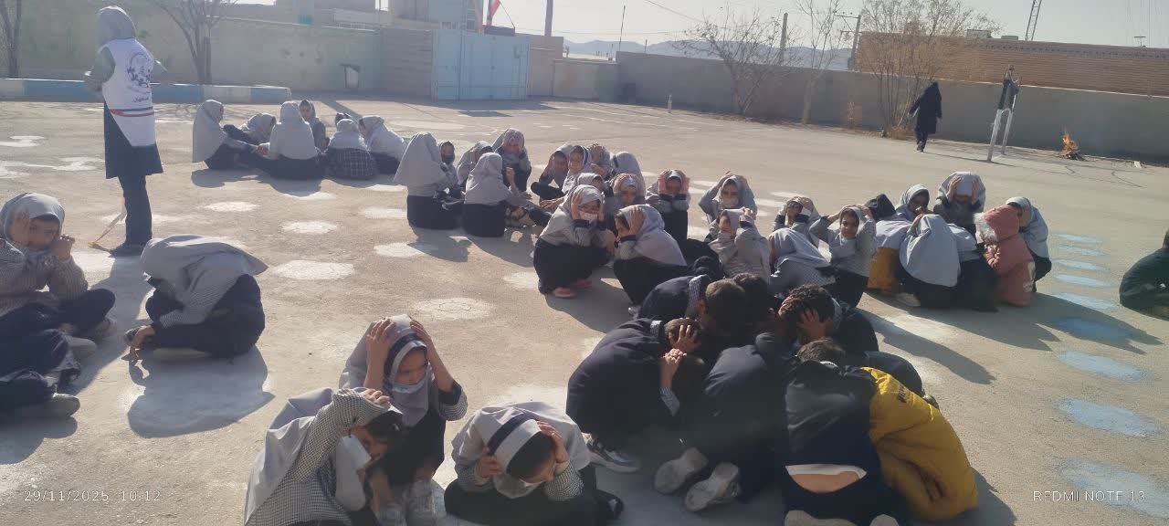 مانور زلزله در مدرسه حضرت معصومه تندران اجرا شد 🔹روز شنبه ۸ آذر ۱۴۰۴ و بهمنظور ارتقای سطح آگاهی و آمادگی دانشآموزان در برابر سوانح طبیعی، بهویژه زمینلرزه، مانور زلزله و همچنین آموزش اطفا حریق در مدرسه حضرت معصومه تندران اجرا شد.
