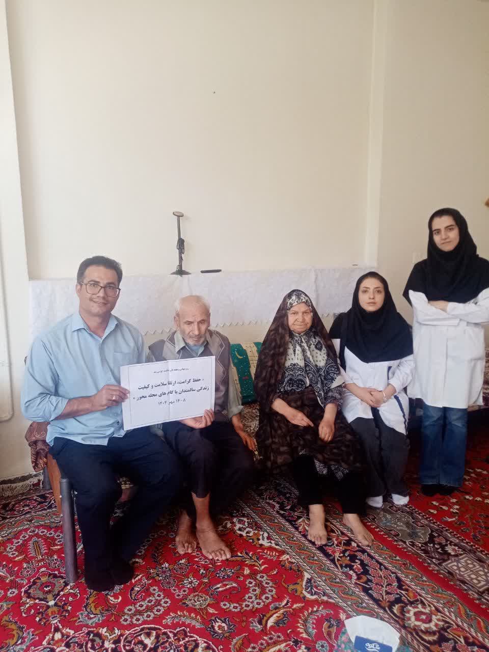 🔹به مناسبت هفته ملی سالمندان، تیم سلامت خانه بهداشت حسنآباد وسطی با حضور پزشک و بهورزان، با هدف ارتقای سلامت جسمی و روانی سالمندان، اقدام به عیادت و ارائه خدمات مراقبتی در منزل نمود. این خدمات شامل معاینه پزشکی، کنترل فشار و قند خون، مشاوره بهداشتی و توزیع مکمل بود.