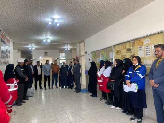 🔹در این مانور خانم دکتر جعفری معاون شبکه بهداشت ودرمان، کادر اورژانس پیش بیمارستانی(۱۱۵)، خانم سلطانی کارشناس واحد خطربلایا، خانم جعفری کارشناس واحد مدارس، آقای هاشمی و خانم احمدی کارشناسان واحد مهندسی بهداشت محیط حضور داشتند.
