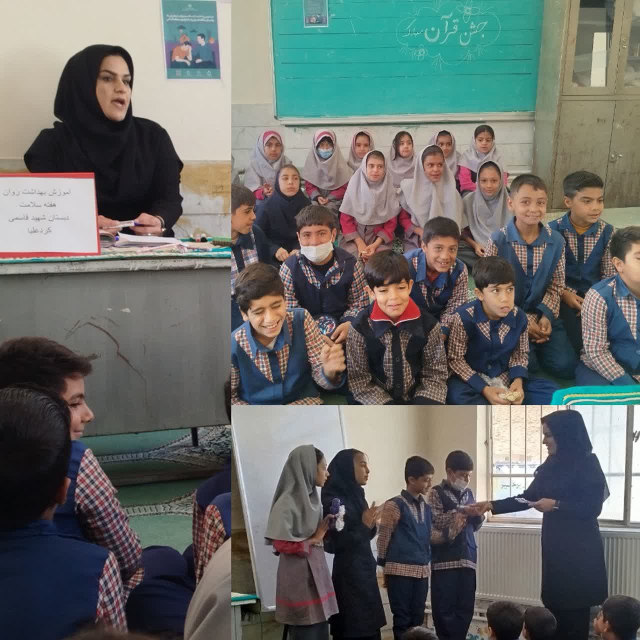 🔹روز چهارشنبه ۲۳مهر ۱۴۰۴کلاس آموزشی بهداشت روان ویژه دانش آموزان مقطع ابتدایی مدرسه شهید قاسمی کردعلیا با موضوع مهارت تاب آوری در بحران و اهمیت سلامت روان توسط کارشناس سلامت روان خانم سلطانی با هماهنگی بهورز خانم صفری و در پایان برگزاری مسابقه با موضوع امید و شادی و اهدای جوایز انجام شد .